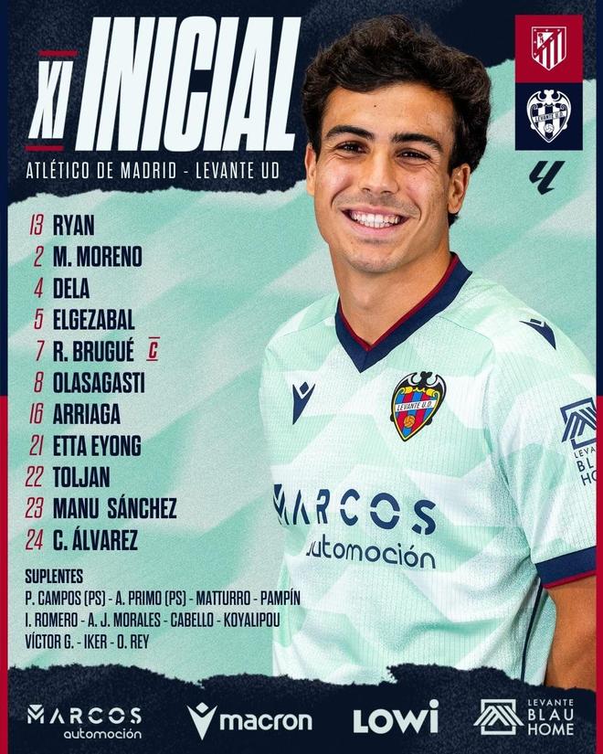 马竞vs莱万特:胡利安-阿尔瓦雷斯、奥布拉克首发,马修-瑞安、布吕吉出战