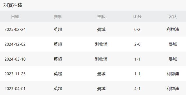 最近四次联赛碰面,曼城面对利物浦连续不胜,战绩为2平2负,比分分别为:1-1、1-1、0-2、0-2,每场比赛都有丢球,如果这一次继续输给利物浦,将是曼城最近十年以来首次遭遇3连败。